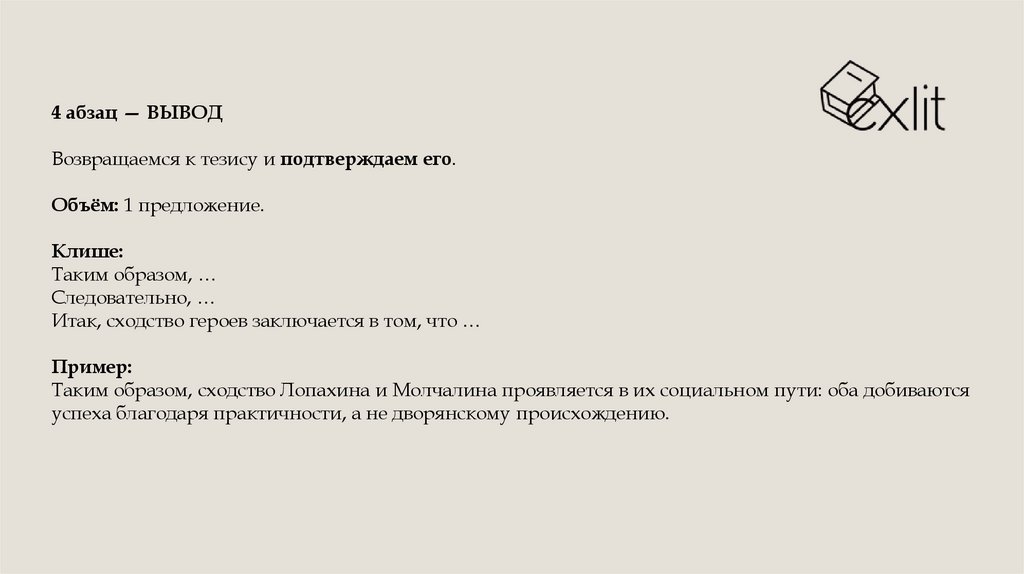 4 абзац — ВЫВОДВозвращаемся к тезису и подтверждаем его.