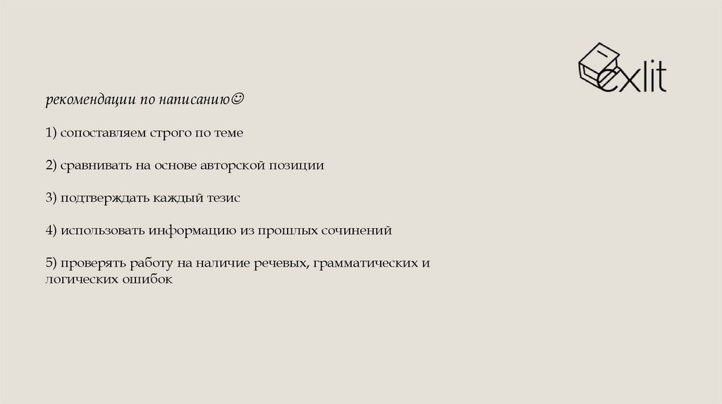 рекомендации по написанию1) сопоставляем строго по теме