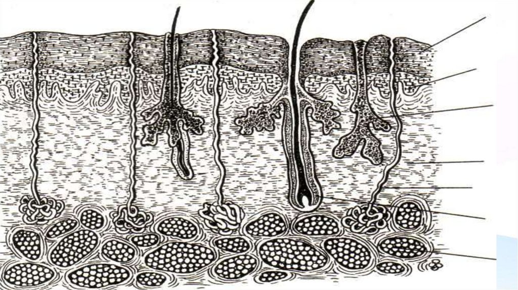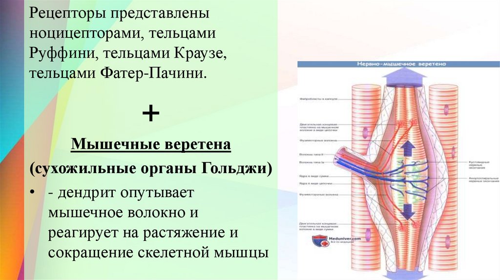 Расположены в дерме кожи, мышцах, связках,сухожилиях, внутренних органах, сосудах.