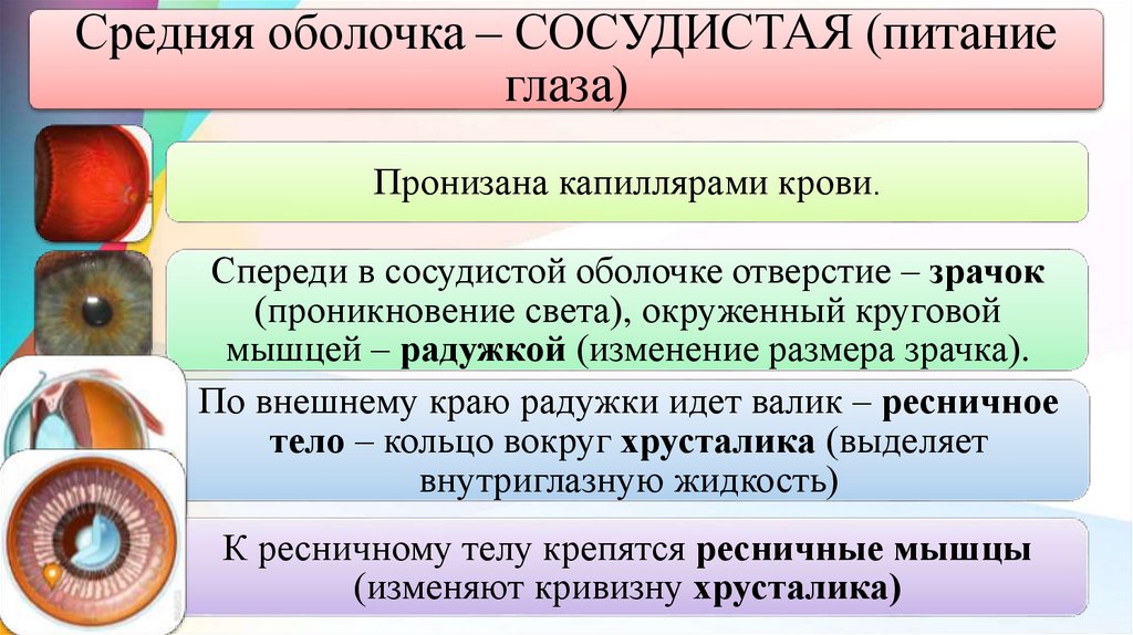 Средняя оболочка – СОСУДИСТАЯ (питаниеглаза)
