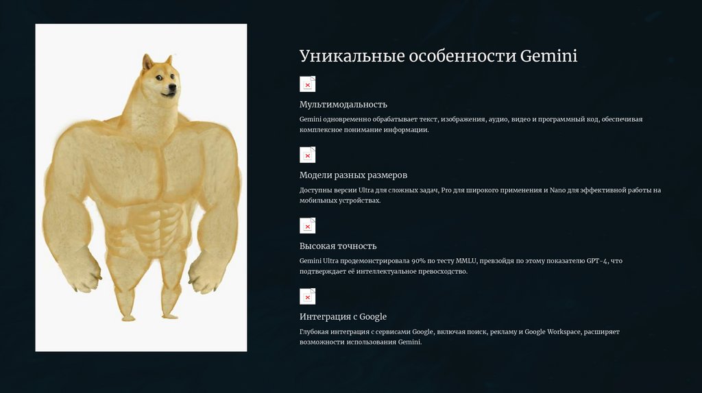 Глубокая интеграция с сервисами Google, включая поиск, рекламу и Google Workspace, расширяет