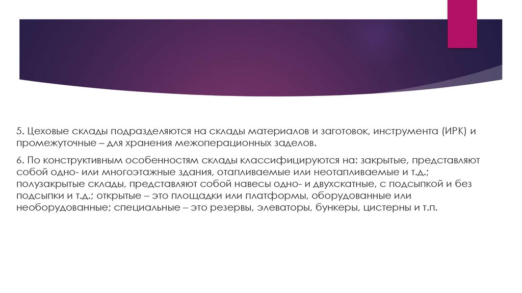 6. По конструктивным особенностям склады классифицируются на: закрытые, представляют