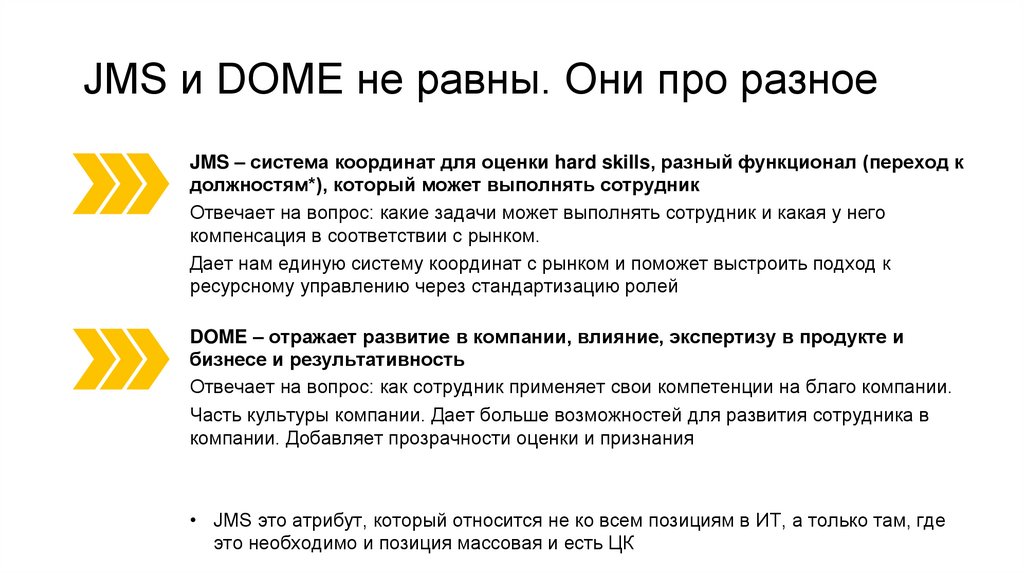 JMS и DOME не равны. Они про разноеJMS – система координат для оценки hard skills, разный функционал (переход к