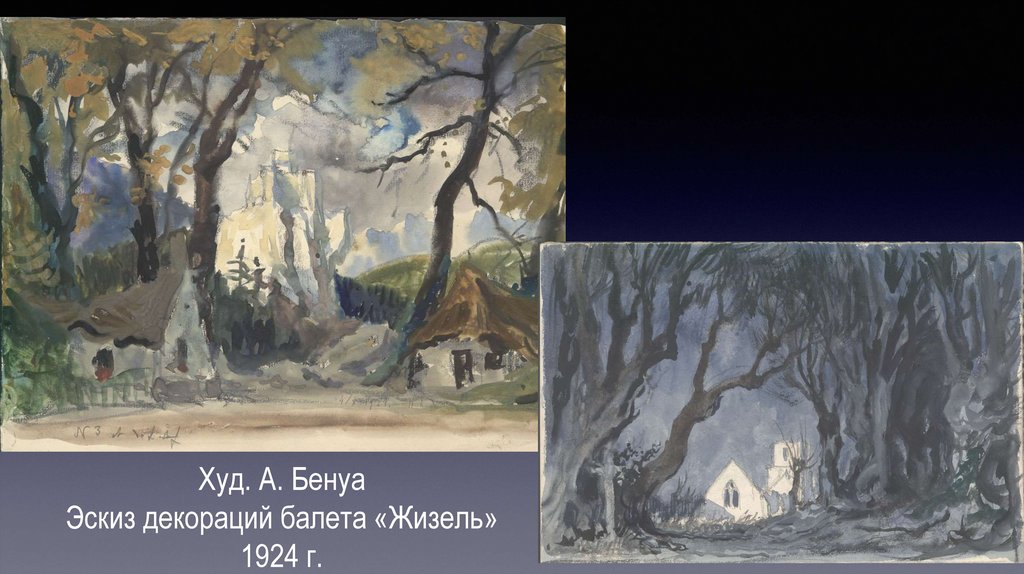 Худ. А. БенуаЭскиз декораций балета «Жизель»