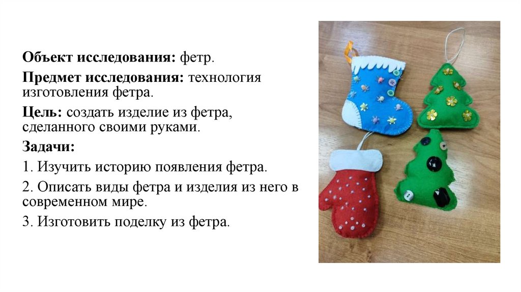 Объект исследования: фетр.Предмет исследования: технология