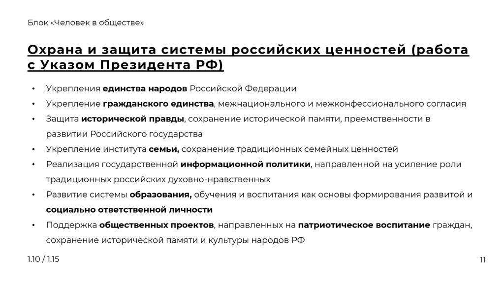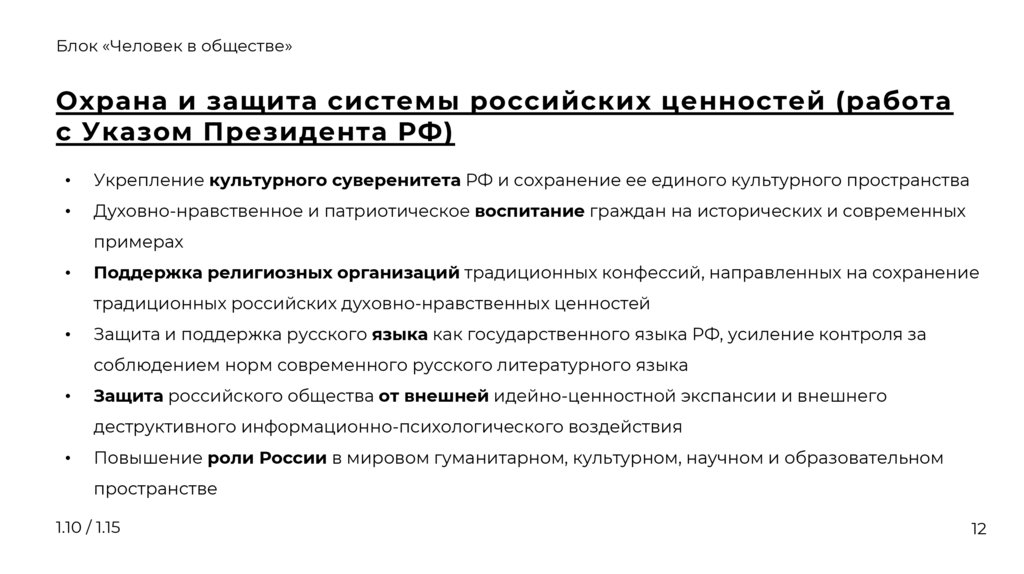 Блок «Человек в обществе»Охрана и защита системы российских ценностей (работа