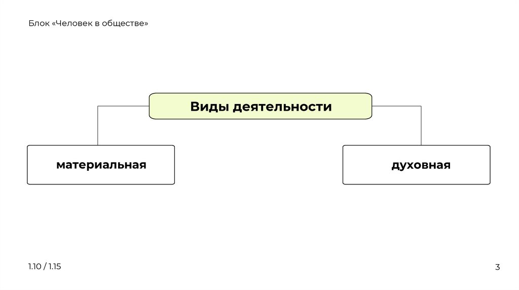 Блок «Человек в обществе»Виды деятельности