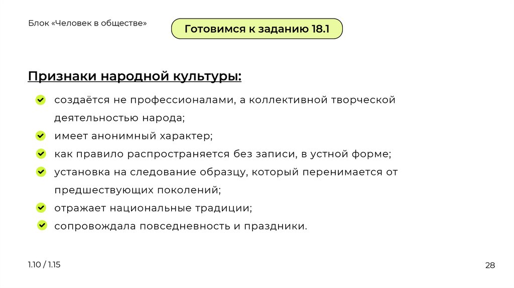 Блок «Человек в обществе»Готовимся к заданию 18.1