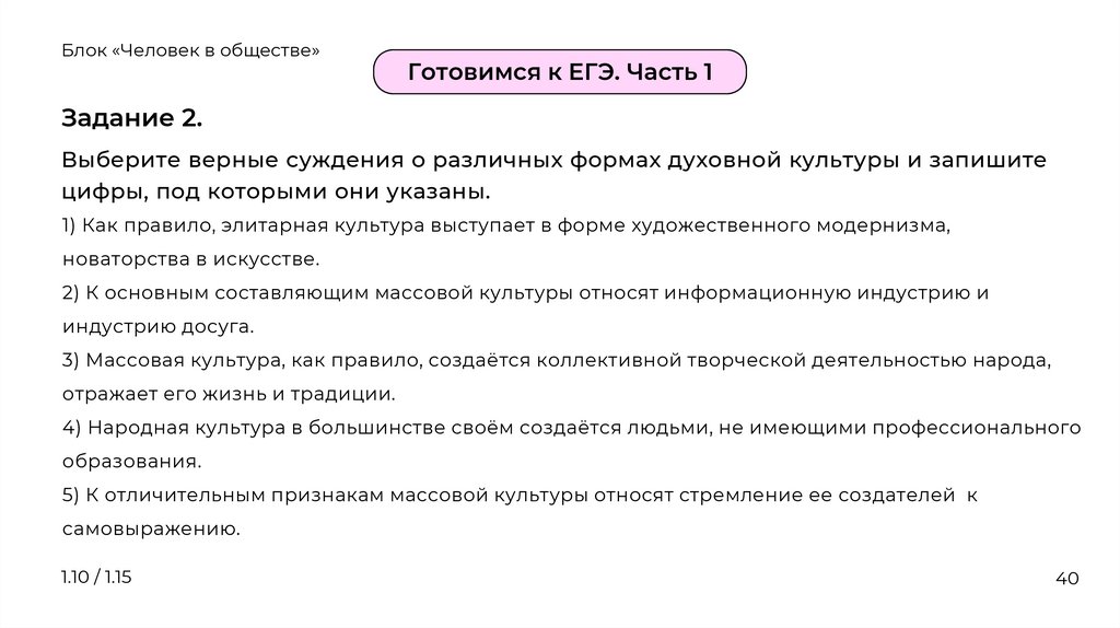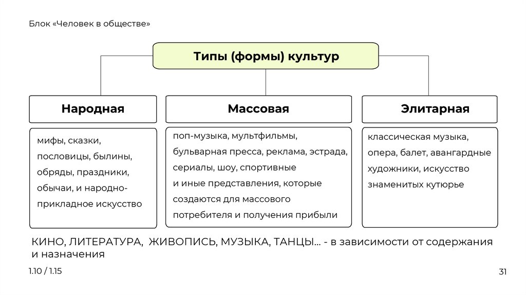 Формы культуры. Народная, массовая и элитарная культура.