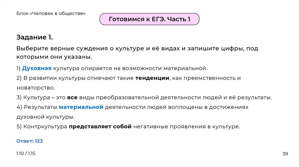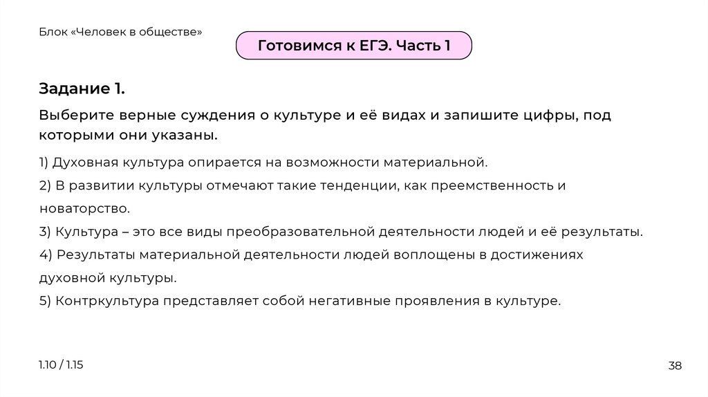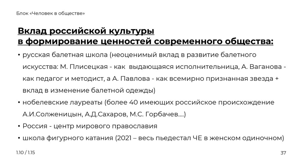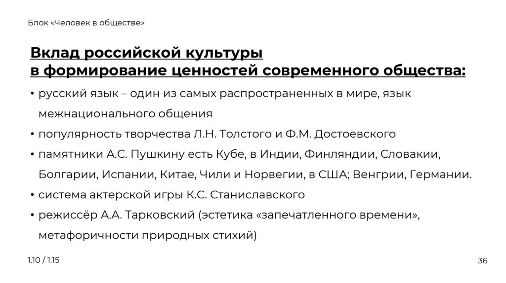 1.10 Духовная деятельность человека. Культура.Вклад российской культуры в формирование