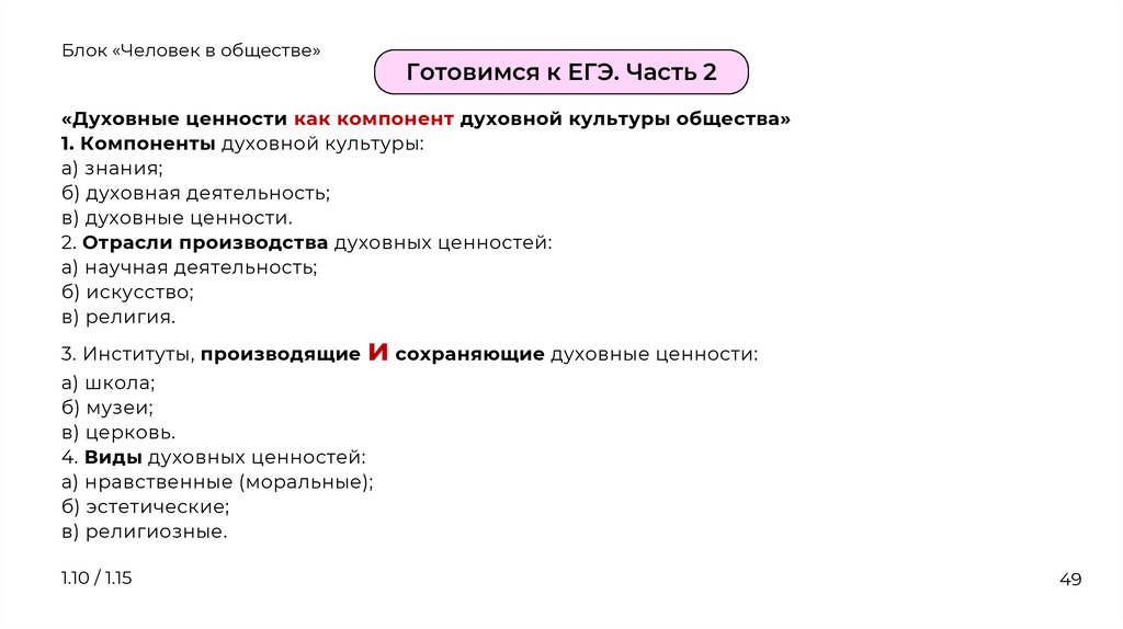1.10 Духовная деятельность человека. Духовные ценностироссийского общества. Материальная и духовная культура.