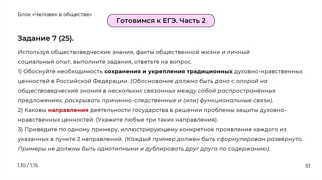 Блок «Человек в обществе»Традиционные ценности российского общества: