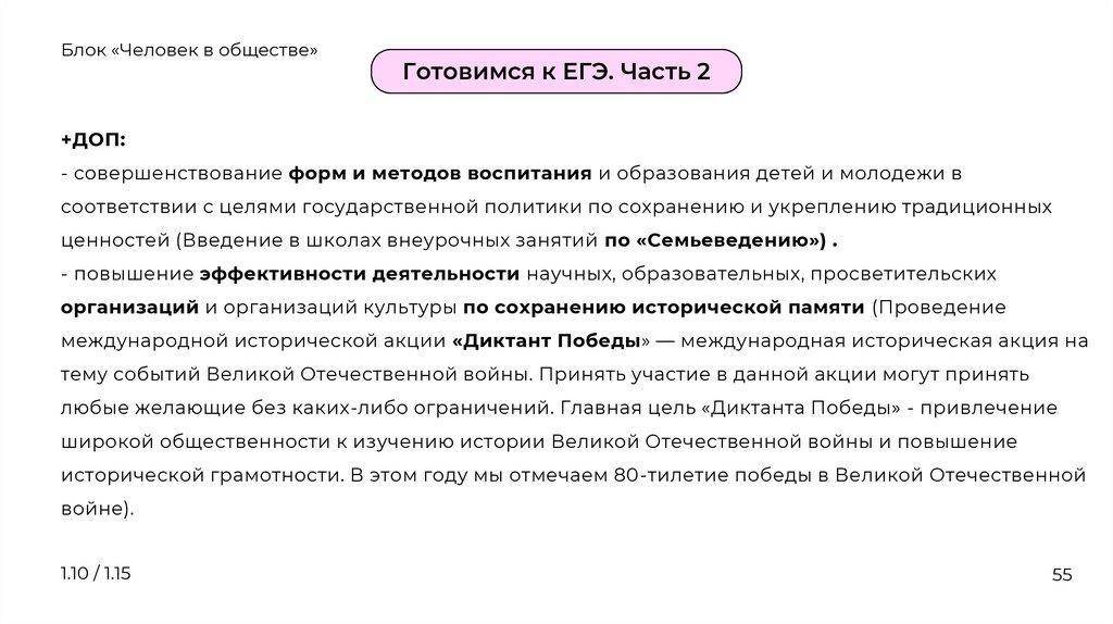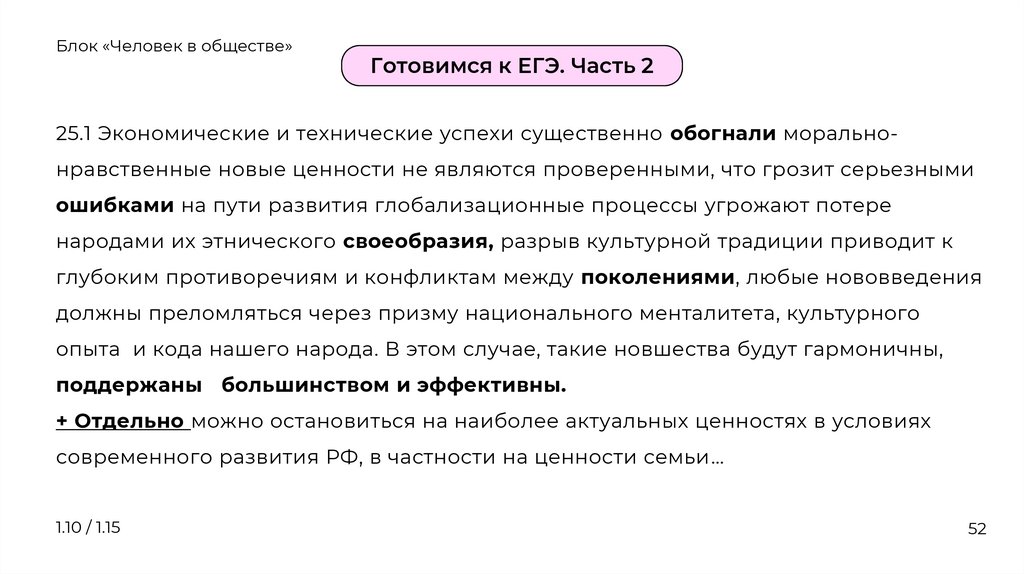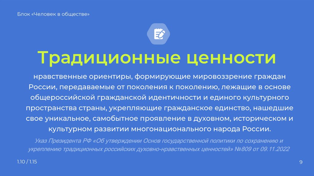 Блок «Человек в обществе»Традиционные ценности