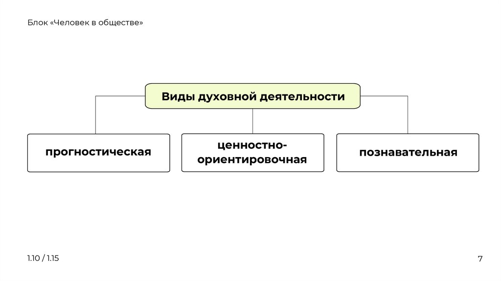 Блок «Человек в обществе»Виды духовной деятельности