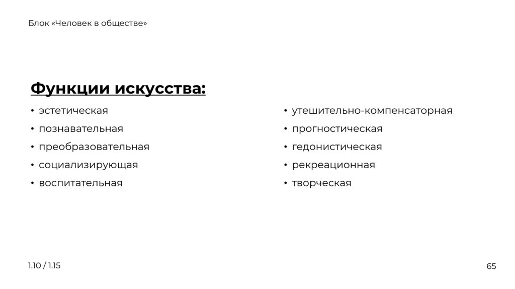 1.15 Искусство, его основные функции. Достижения