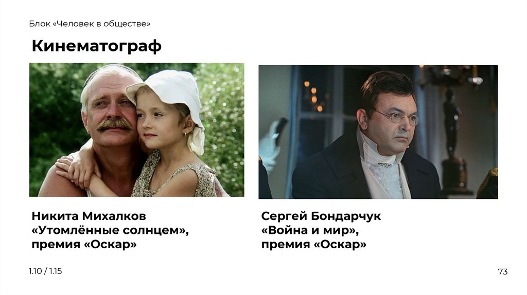 Блок «Человек в обществе»Кинематограф