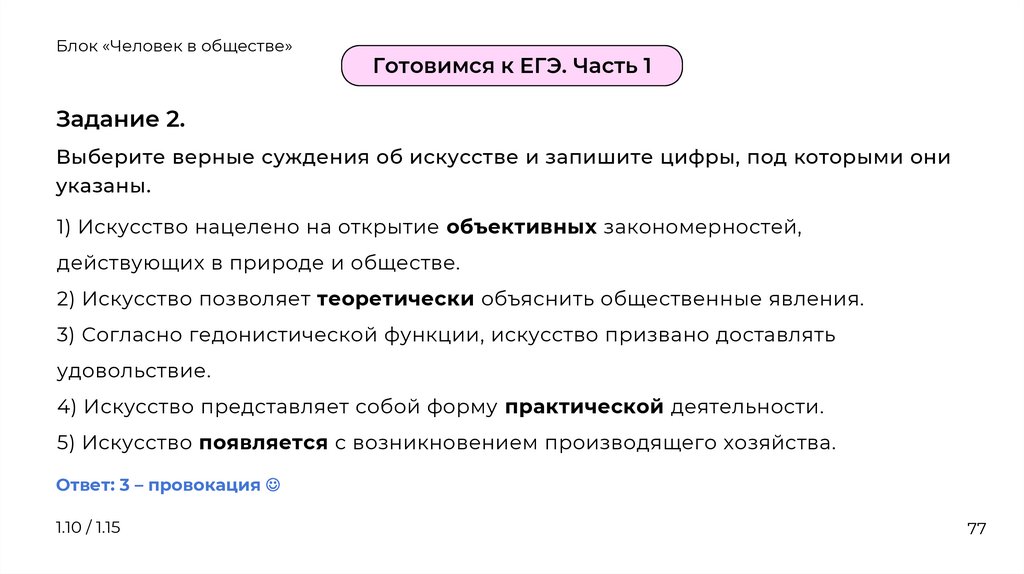 3) Согласно гедонистической функции, искусство призвано доставлять