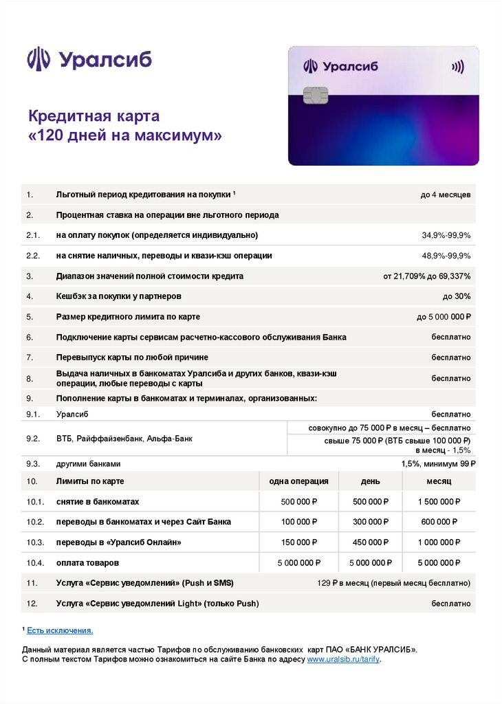 Данный материал является частью Тарифов по обслуживанию банковских карт ПАО «БАНК УРАЛСИБ».