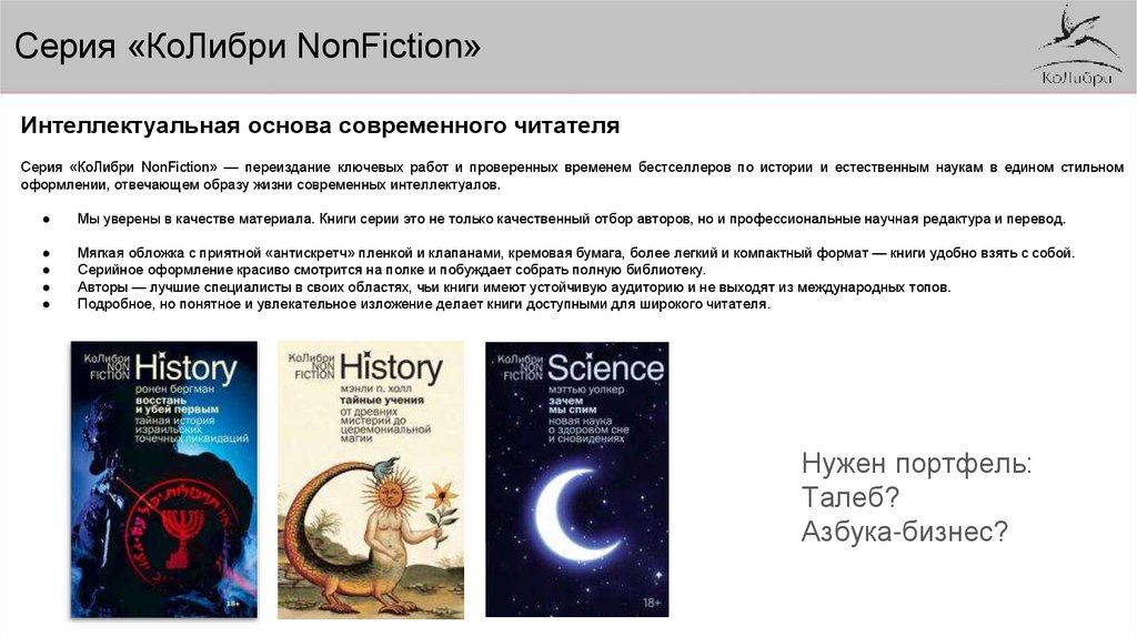 Серия «КоЛибри NonFiction» — переиздание ключевых работ и проверенных временем бестселлеров по истории и естественным наукам в едином стильном