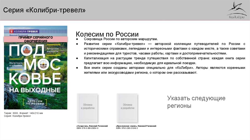 Развитие серии «Колибри-тревел» — авторской коллекции путеводителей по России с