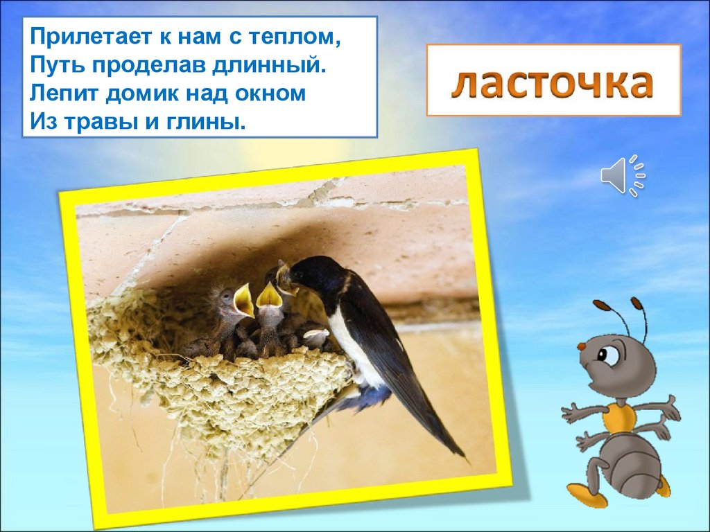 Прилетает к нам с теплом,Путь проделав длинный.