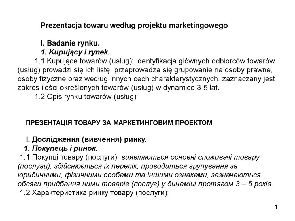 ПРЕЗЕНТАЦІЯ ТОВАРУ ЗА МАРКЕТИНГОВИМ ПРОЕКТОМ