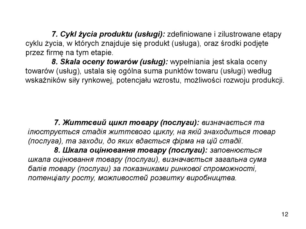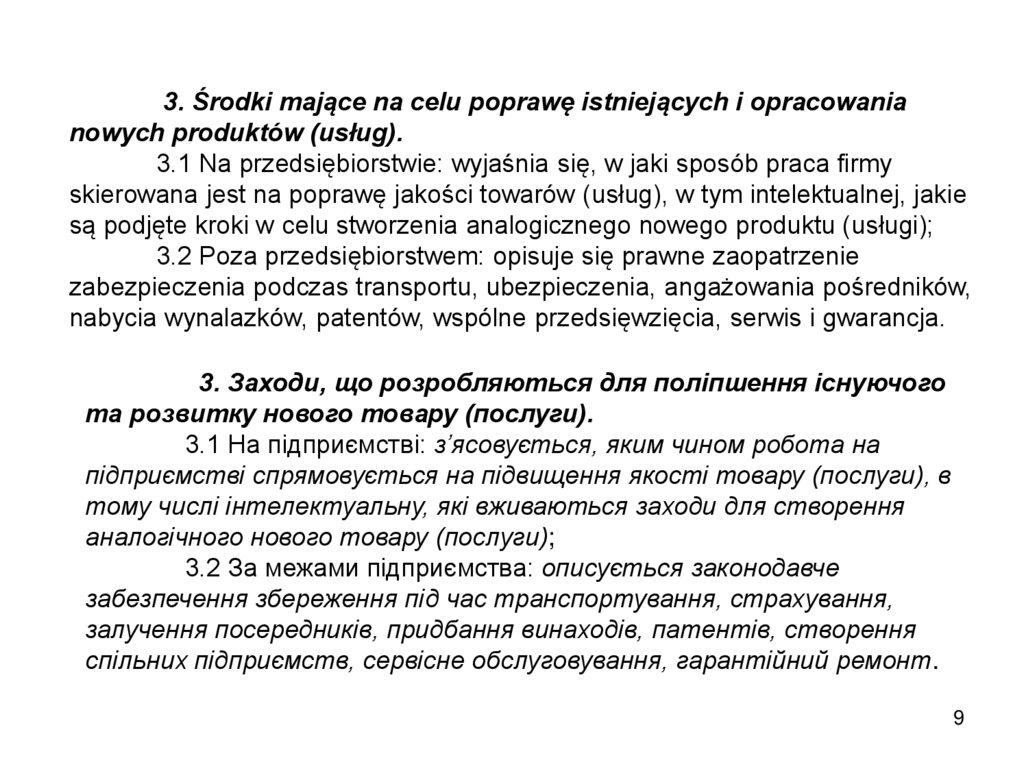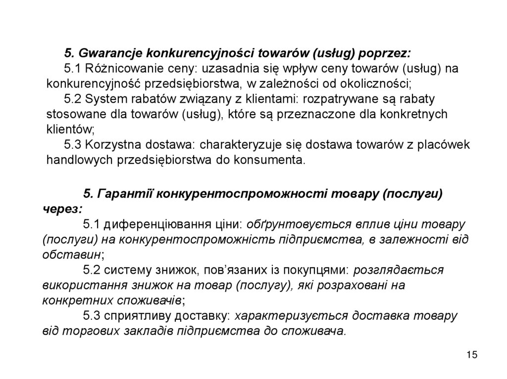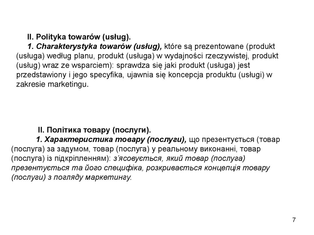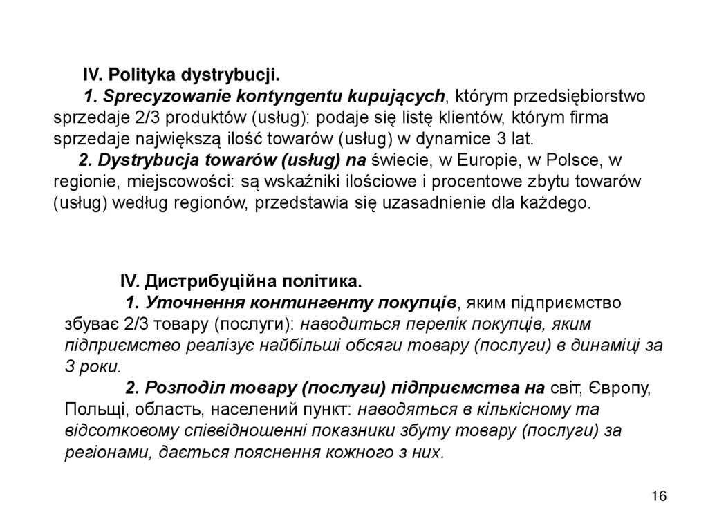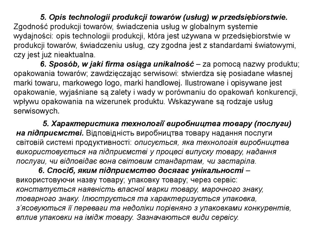obsługa serwisowa towarów (usług), polityka dystrybucji i komunikacji, itp.).