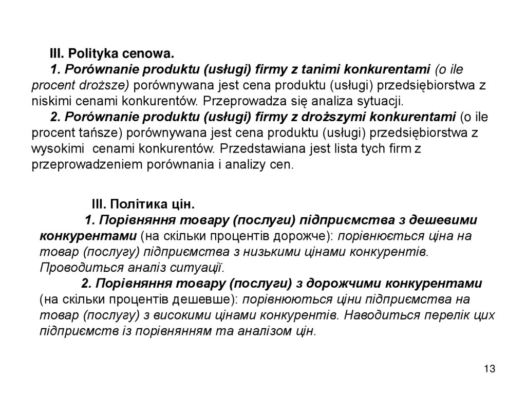ujmują się wady przedsiębiorstwa i konkurentów (jakość, cena, objętość, zbyt,