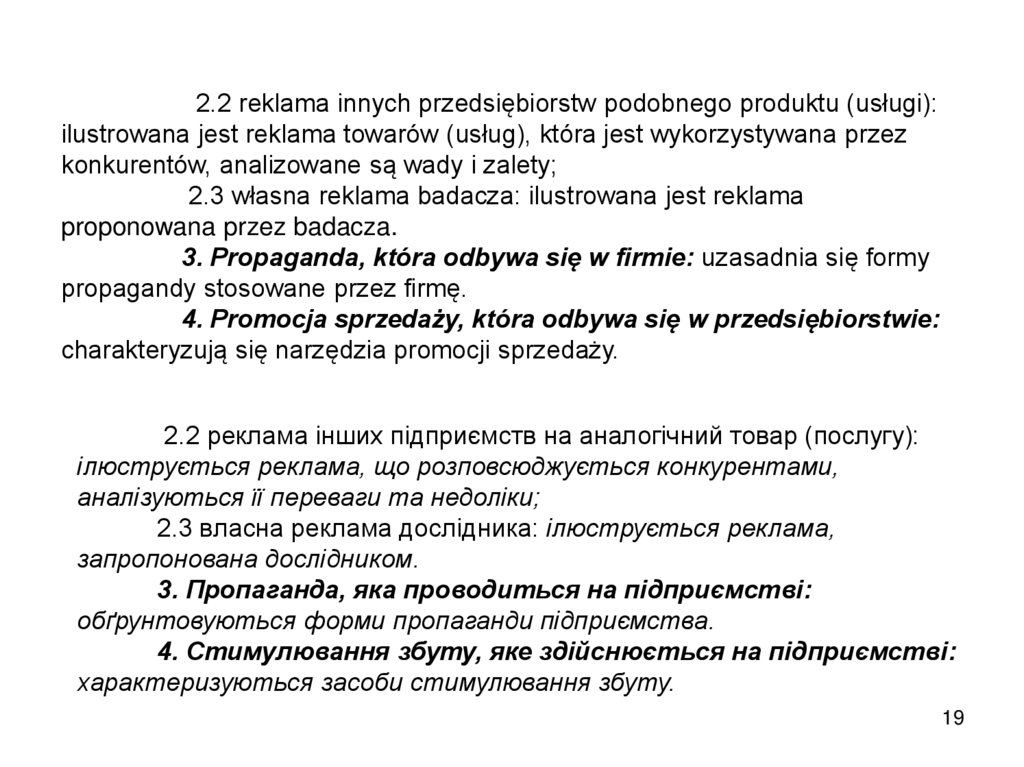 2.2 reklama innych przedsiębiorstw podobnego produktu (usługi):ilustrowana jest reklama towarów (usług), która jest wykorzystywana przez