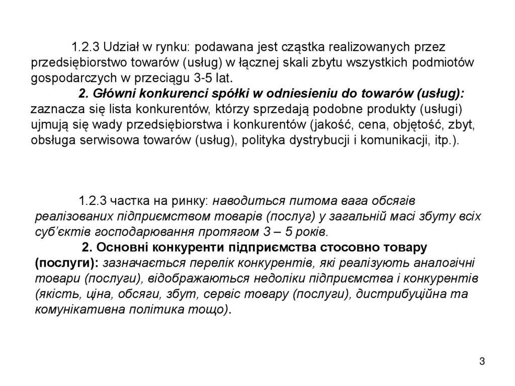 1.2.3 Udział w rynku: podawana jest cząstka realizowanych przezprzedsiębiorstwo towarów (usług) w łącznej skali zbytu wszystkich podmiotów