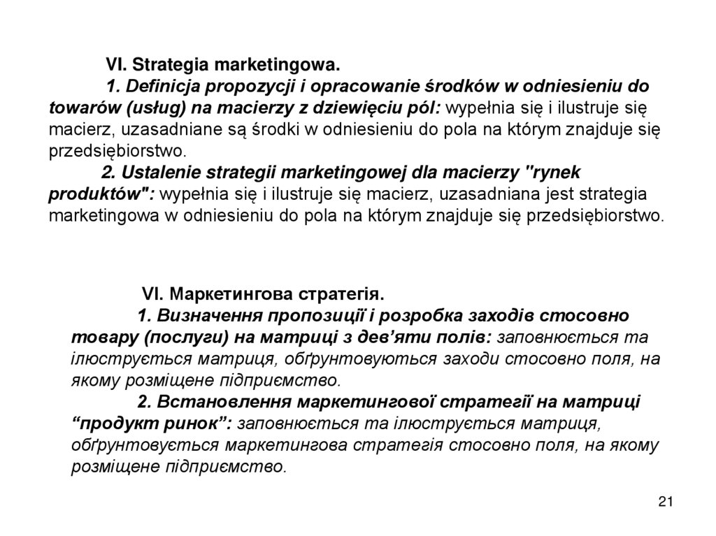 VI. Strategia marketingowa.1. Definicja propozycji i opracowanie środków w odniesieniu do