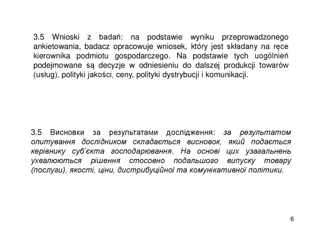 3.5 Wnioski z badań: na podstawie wyniku przeprowadzonegoankietowania, badacz opracowuje wniosek, który jest składany na ręce