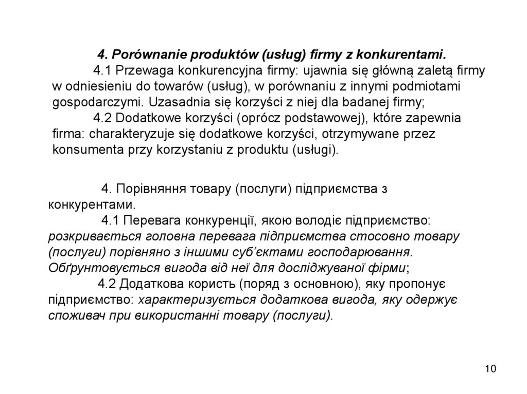 товари (послуги), відображаються недоліки підприємства і конкурентів