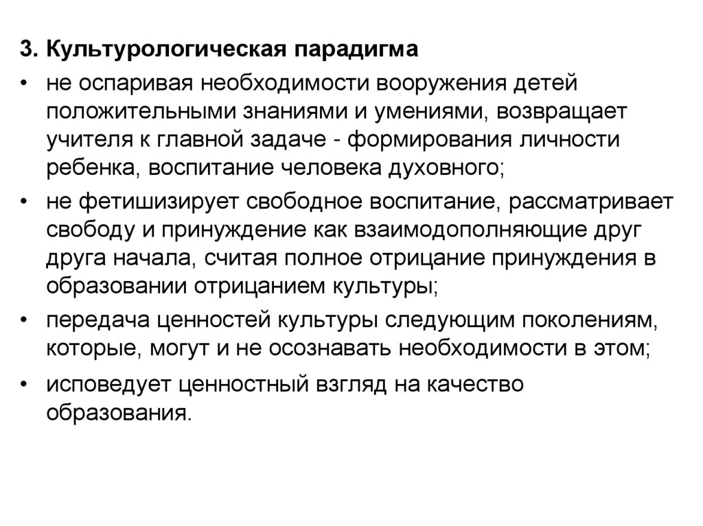 3. Культурологическая парадигма• не оспаривая необходимости вооружения детей