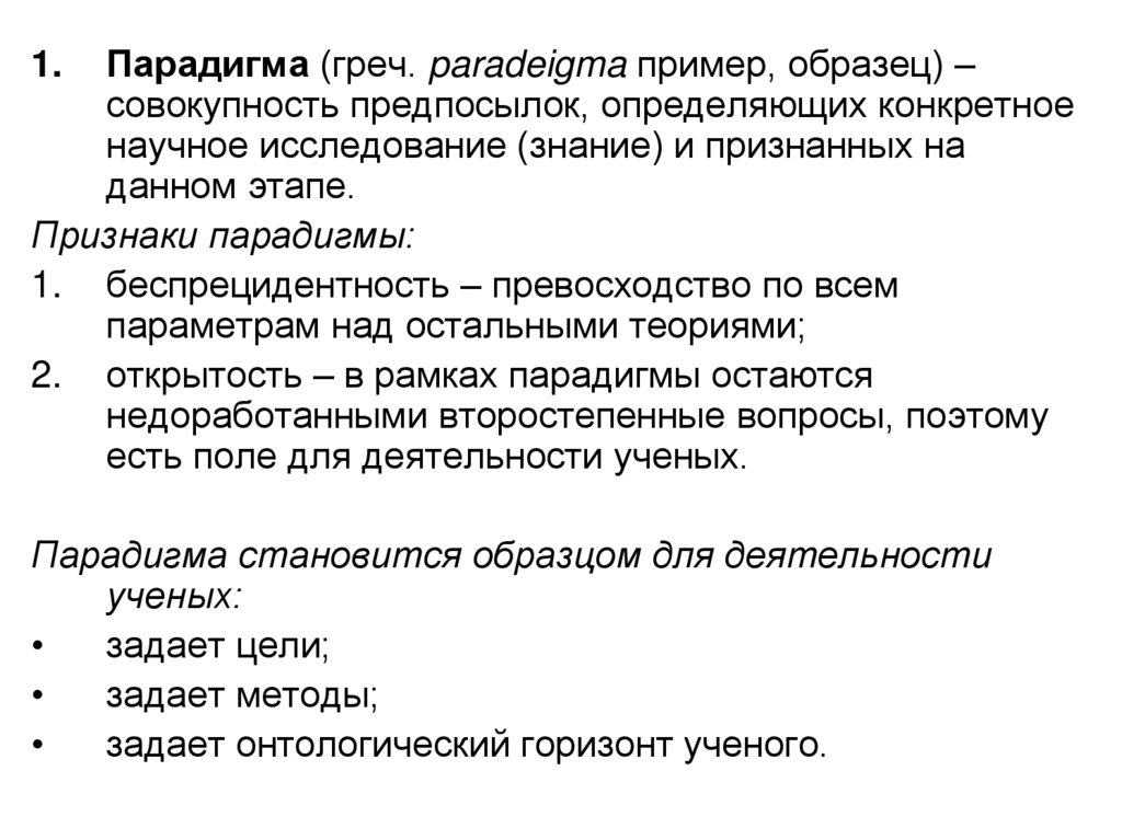 Парадигма (греч. paradeigma пример, образец) –совокупность предпосылок, определяющих конкретное
