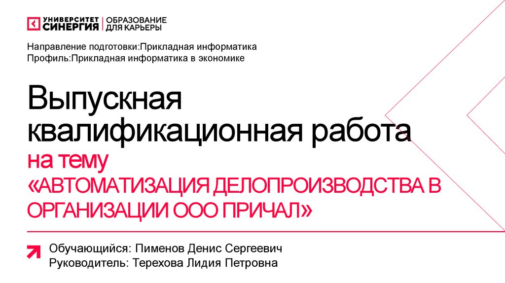 Направление подготовки:Прикладная информатикаПрофиль:Прикладная информатика в экономике