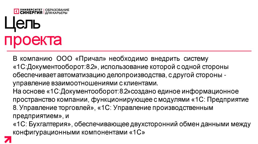 В компанию ООО «Причал» необходимо внедрить систему