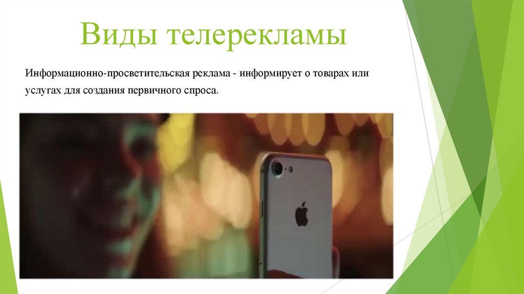 Виды телерекламыИнформационно-просветительская реклама - информирует о товарах или