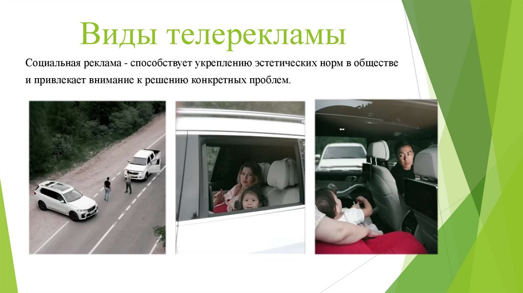 Виды телерекламыСоциальная реклама - способствует укреплению эстетических норм в обществе