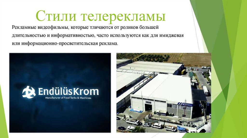 Стили телерекламыРекламные видеофильмы, которые тличаются от роликов большей