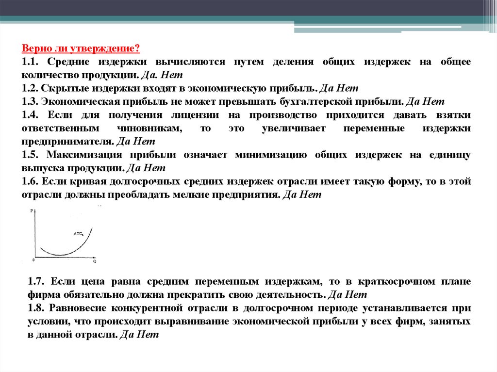 Верно ли утверждение?1.1. Средние издержки вычисляются путем деления общих издержек на общее