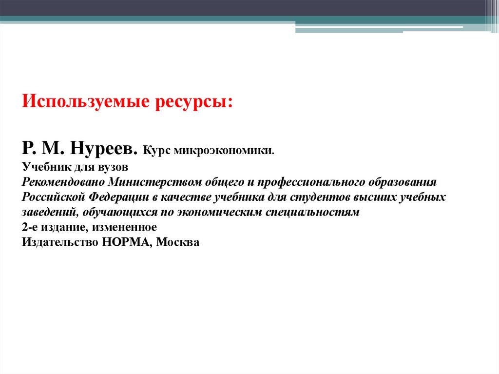 Используемые ресурсы:P. M. Нуреев. Курс микроэкономики.