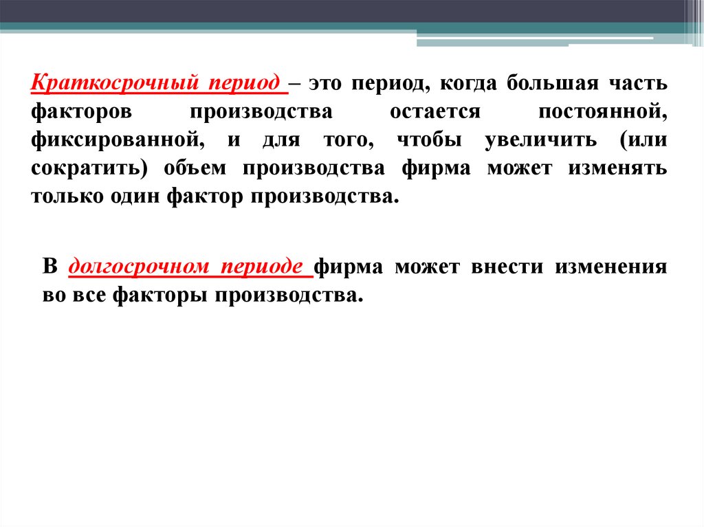 Краткосрочный период – это период, когда большая частьфакторов