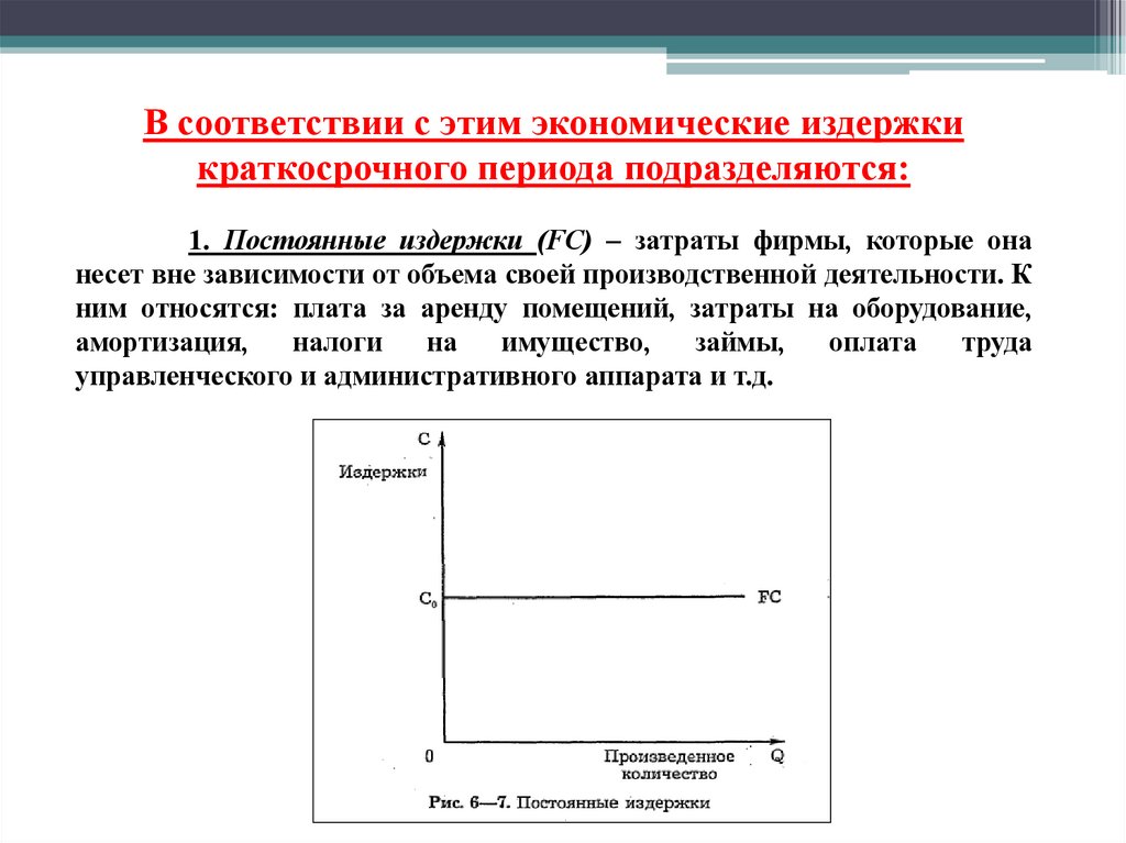 1. Постоянные издержки (FС) – затраты фирмы, которые она