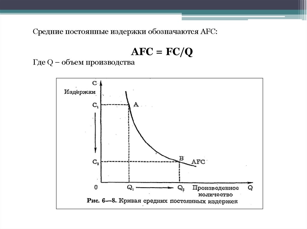 Средние постоянные издержки обозначаются АFС:АFС = FC/Q