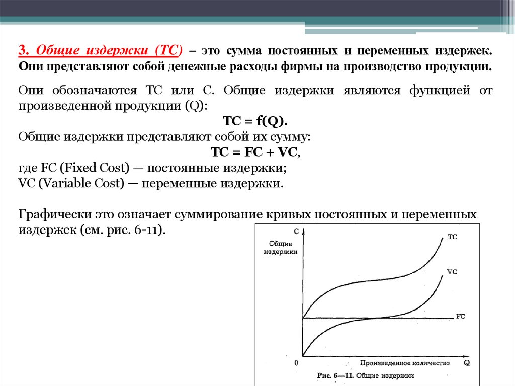 Они обозначаются ТС или С. Общие издержки являются функцией от