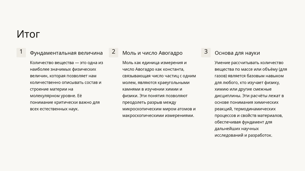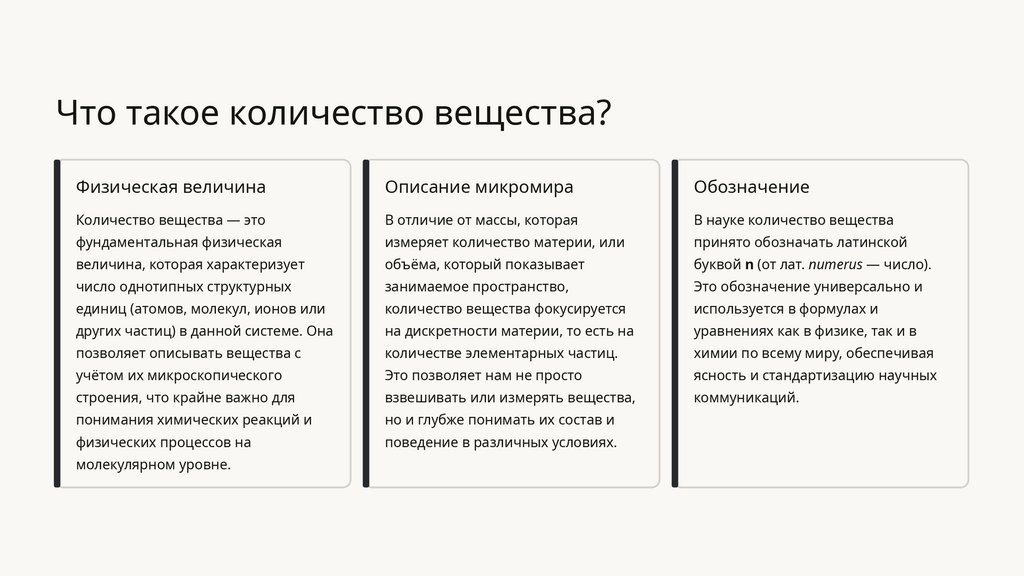 Понимание количества вещества позволяет точно