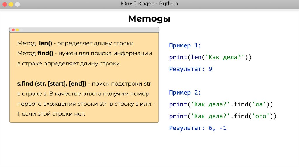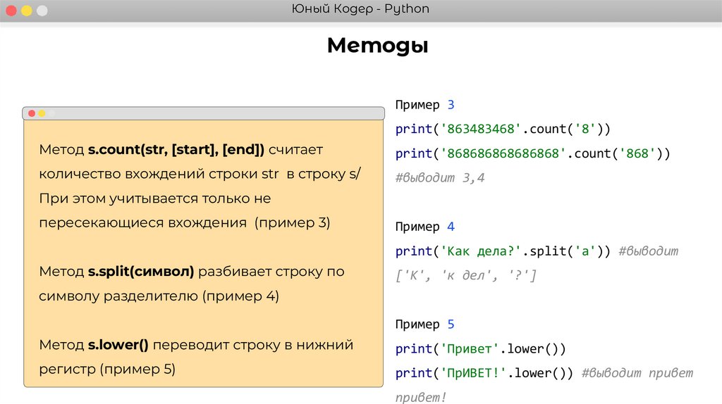 Юный Кодер - PythonМетоды