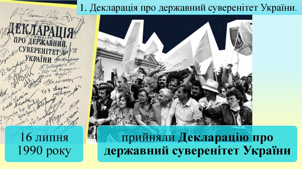 • - підписання нового союзного договору можливе лише після розбудови правової суверенної Української держави та