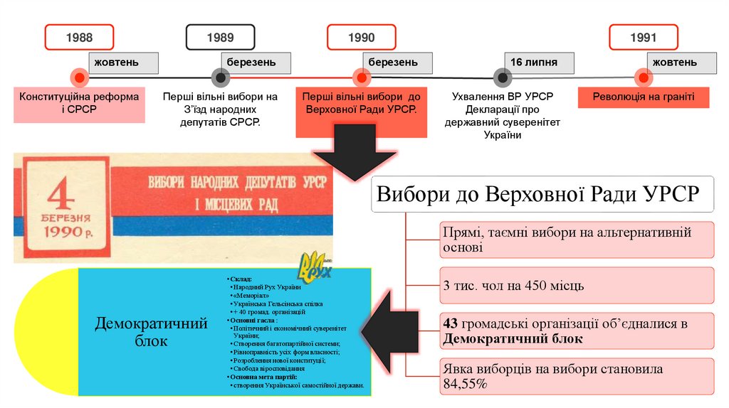 Конституційна реформа 1988 р.Перші вільні вибори до Верховної Ради УРСР.